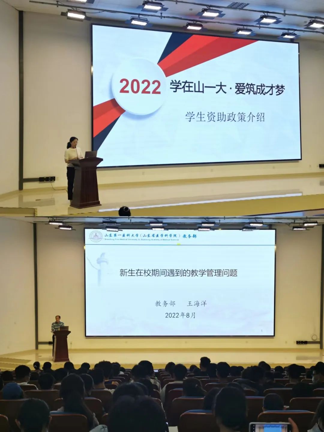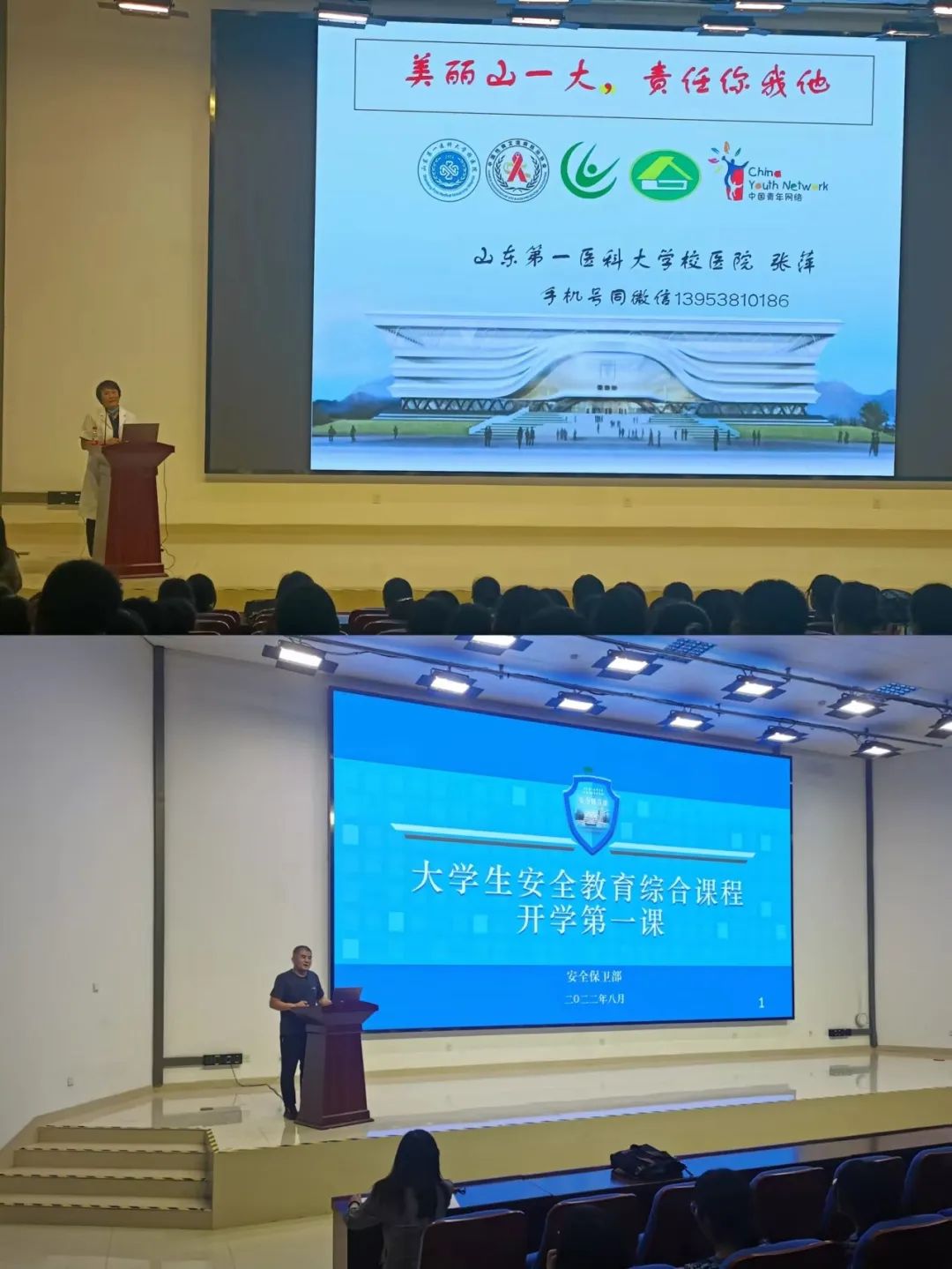 8月29日晚,校医院院长张萍为学院2022级新生进行了大学生健康教育。张萍院长向新生介绍了校医院的配备、人员组成以及校医院工作安排,讲解了乙肝防控对同学们日常生活的重要性,同时向大家介绍了医疗保险的相关政策。结合常态化疫情防控要求,张院长提醒同学们要坚持勤洗手、戴口罩,按规定时间做核酸等,保障自己的生命健康。安保部顾建老师对同学们进行了安全教育,强调了防盗安全、消防安全的重要性,并向同学们展示了网络贷款诈骗、刷单返利诈骗等事例,告诫同学们一定提高警惕,谨防电信诈骗。通过防火、防盗、防诈骗、防传销等安全教育,同学们提高了安全防范意识以及应对突发事件的能力。同时,顾健老师向同学们进行了国民安全、领土安全、主权安全等方面的教育,引导学生增强维护国家安全的责任感和能力。