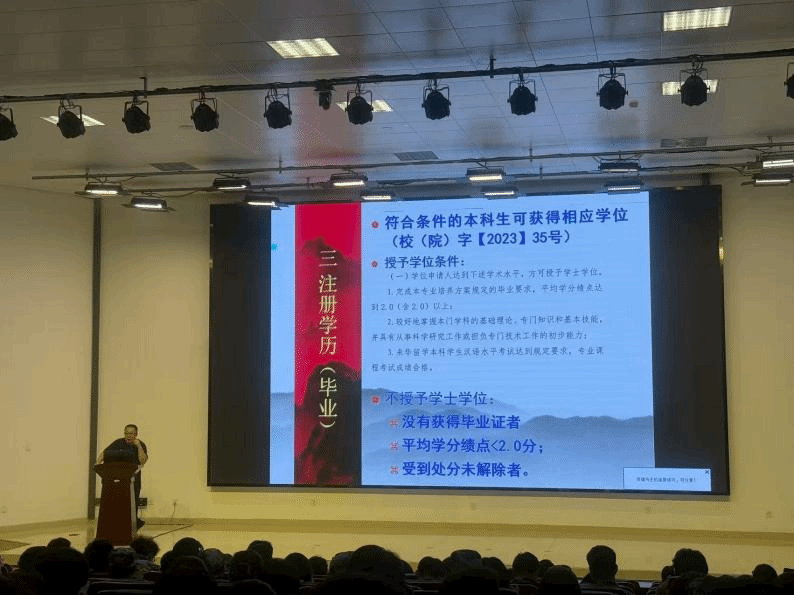 校医院院长张萍召开以“美丽山一大,健康我守护”为主题的健康教育讲座,详细介绍了校医院的科室设置、就诊流程及医保报销政策,让新生对校园医疗保障体系建立清晰认知。教务部房建强为2025级新生开展教学管理制度专题讲座,从学校层面系统解读教务管理与学业要求。房建强围绕学籍管理、选课操作、考试纪律及毕业条件等核心内容,结合校(院)教学管理规定进行了详细讲解。
