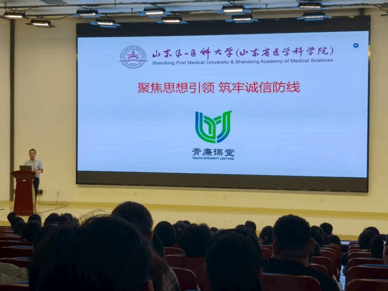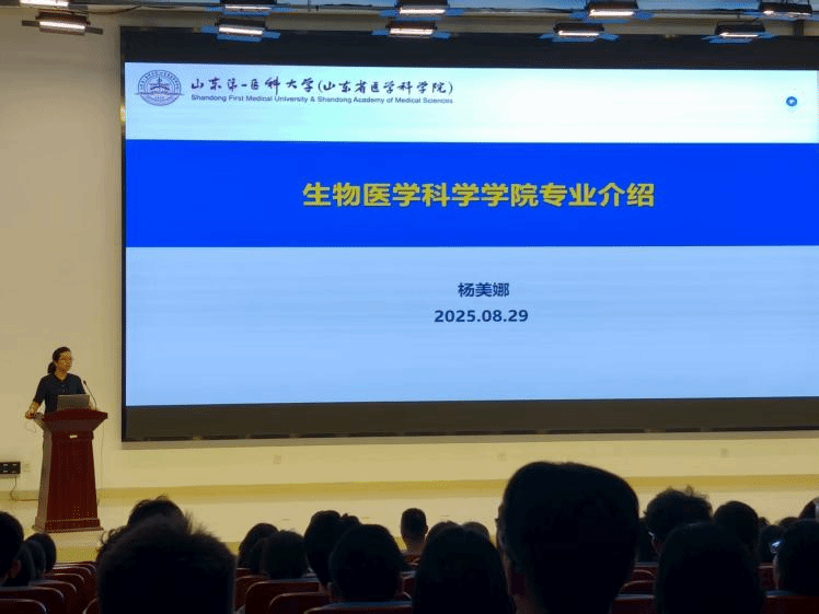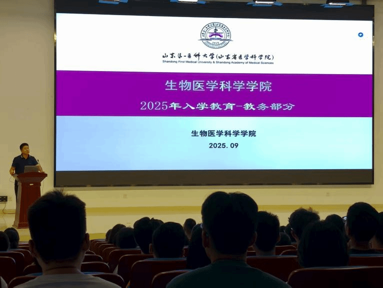 学院党委副书记曹广祥为新生作了题为“回望抗战征程,传承红色基因;铭记抗战史,勇担时代责”的爱国主义教育专题讲座,同时结合“青廉课堂”,开展题为“聚焦思想引领 筑牢诚信防线”的诚信清廉主题教育。学院副院长杨美娜为新生开展专业教育,系统介绍了生物医学科学、生物技术专业以及“泰山班”的建设情况。
