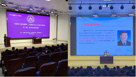 9月6日晚,学院邀请校(院)党委宣传部常务副部长张峰为新生进行党史国情教育,作了题为“弘扬伟大建党精神,自觉践行社会主义核心价值观”的报告。报告从1919年五四运动的爆发开始,讲到1921年浙江嘉兴南湖游船上的中共一大召开,再到1945年中共七大确立了毛泽东思想的指导地位,使党在思想上政治上达到了高度统一,逐渐走向成熟,最后到现在中国共产党成立一百周年华诞的繁荣和平盛世,使同学们对中国共产党的百年历史有了清晰的了解,同时也深刻体会到了中国共产党创立的不易,感受到了中国共产党的伟大。报告还引导同学们要学习贯彻习近平新时代中国特色社会主义思想,激励大家自觉践行社会主义核心价值观,为实现中华民族伟大复兴的中国梦贡献力量,同学们反响热烈。
