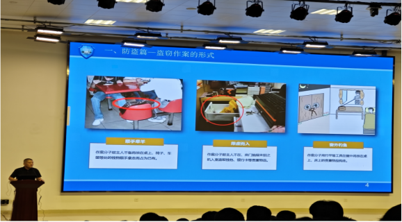 随后安保部顾建老师对新同学们上了安全教育的开学第一课,强调了防盗安全、消防安全的重要性,并向同学们讲述了网络贷款诈骗、刷单返利诈骗等事例,提醒同学们一定提高警惕,谨防电信诈骗。通过防火、防盗、防诈骗、防传销等安全教育,让校园安全彻底扎根于新生的安全意识中。