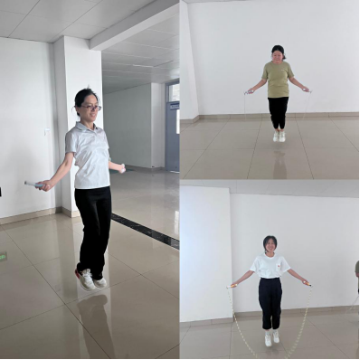 老师们各显“绳”通、默契配合、精神抖擞、意气风发,随着绳子和毽子的起落轻盈跳跃,笑声与汗水一同挥洒,整个比赛精彩纷呈,妙趣横生,紧张激烈的角逐伴随着此起彼伏的欢笑声和加油声,激情与紧张同在,友谊与比赛共存,整个活动室也成为了一片欢腾的海洋。在活动中,老师们释放了压力,愉悦了身心,放松了心情,锻炼了身体,充分享受了运动的快乐。活动也为老师们搭建了交流和活动的平台,大力倡导全体教师主动参与到全民健身活动,让老师们在工作之余,积极锻炼,舒缓身心,培养兴趣,增进情感交流,激励学院教师以健康的体魄投入到教书育人工作,以更加昂扬的精神状态,一往无前的奋斗姿态,在推动新时代校(院)高质量发展中做出更大贡献。