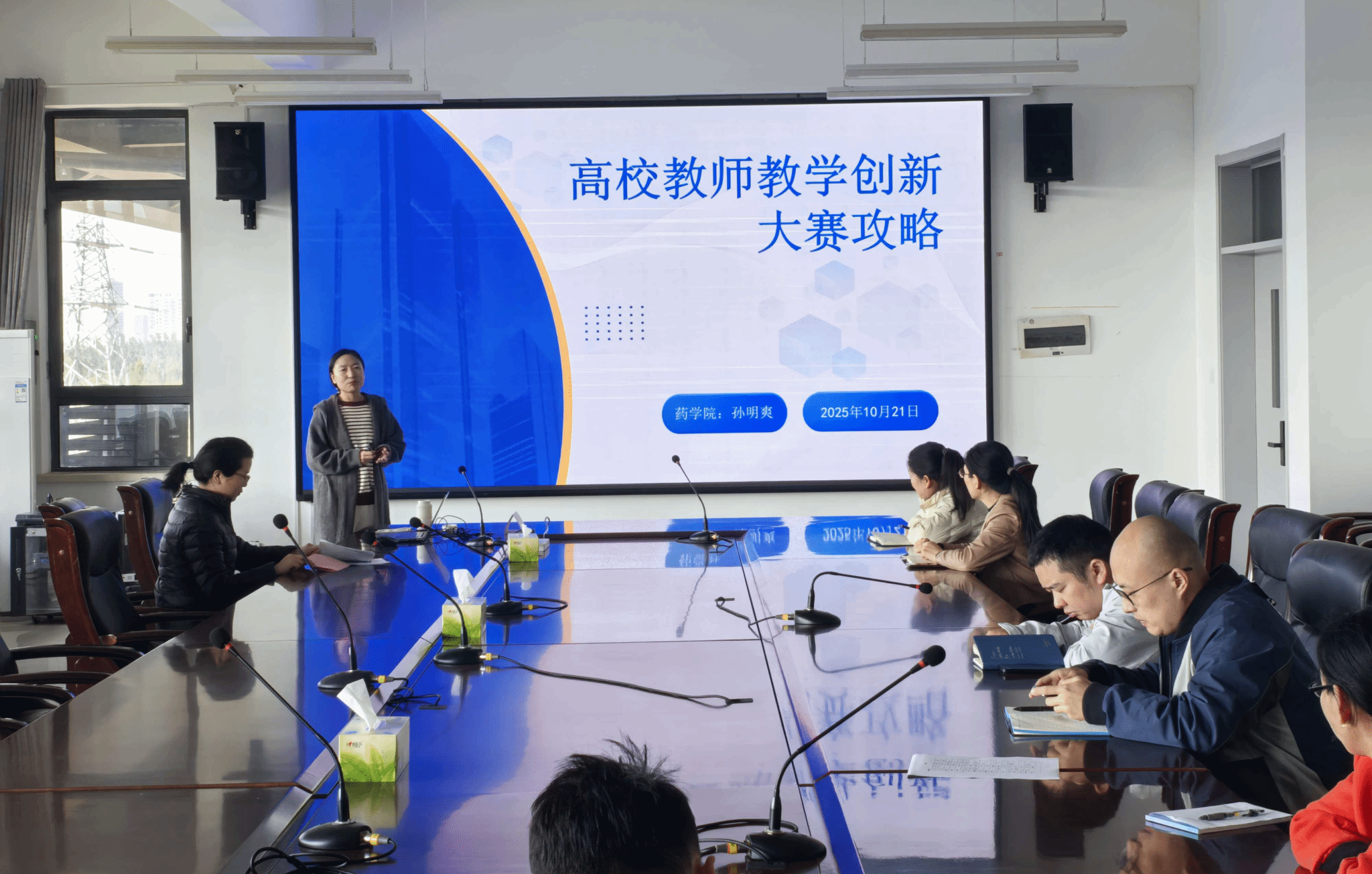 第五届全国高校教师教学创新大赛三等奖获得者、药学院(药物研究所)孙明爽博士讲述了教学问题凝练、内容重构与资源建设、创新举措、创新成效等实践心得,并对拟参加校教学创新大赛的各位老师的申报材料进行了针对性指导。