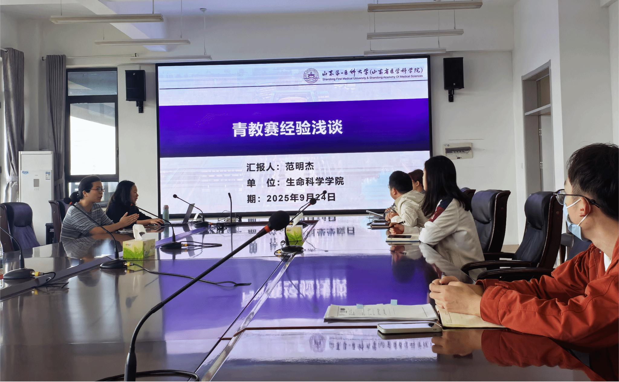 第十一届山东省高校青年教师教学比赛二等奖获得者范明杰,从教学设计、现场教学、教学反思等方面介绍了个人经验,并对学院将要参加校青年教师比赛的老师们的申报材料进行了细致点评。