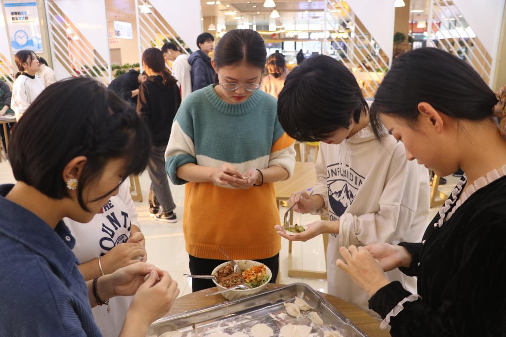 冬至素有吃饺子的习惯,为了丰富同学的大学生活,让同学感受到节日的温暖,缓解同学们的思乡之情,学院在冬至这一天组织了一场别开生面的包饺子活动。同学们围坐在一起,和面的和面,擀皮的擀皮,包饺子的包饺子,场面很是精彩。校(院)及机关处室的领导也亲临活动现场慰问同学们,为同学们送去节日的祝福,校(院)党委委员、副校(院)长吕晓黎走到学生中间,亲手为同学们示范包饺子的各项要领,同学们纷纷表示吕副校(院)长就像家里的长辈一样和蔼亲切。吃着大家自己包的香喷喷的饺子,大家感受到了青春的快乐和集体的温暖。