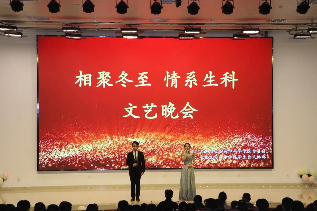 随后,由共青团v站体育官网委员会主办,v站体育官网院学生会承办的“相聚冬至,情系生科”文艺汇演在生科楼报告厅盛大举行。此次晚会的节目内容形式多样、丰富多彩。开场舞《舞蹈串烧》将快乐的气氛带入了现场;小品《一切都是最好的安排》诙谐生动的表演引发一阵阵的笑声;《因为爱情》更是将整场晚会推向了高潮,舞蹈《我和我的祖国》让同学们感受到了深深的家国情怀,朗诵更是赢得了阵阵掌声。