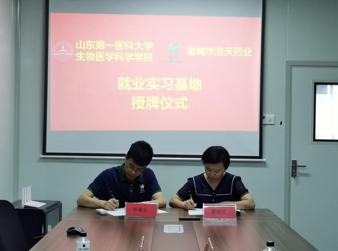 学院与诸城浩天药业签订了实习就业基地协议,并进行了授牌。授牌仪式上学院领导与企业负责人进行了广泛的交流,企业负责人首先对学院领导和同学们的到来表示热烈的欢迎,随后对企业的主要产品、岗位需求以及下一步的发展方向进行了交流。