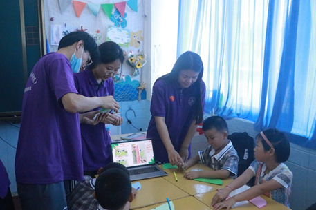 本次支教活动共分为三项进行:生物组通过看视频、猜动作和有奖问答充分带动了小朋友们学习的热情,不仅让小朋友学到了许多生物科学知识,更培养了小朋友们对生物科学的兴趣。职业认知组通过精心挑选的动画片带领小朋友们认识消防员、医生、警察等各种职业,帮小朋友们找到了努力的方向,树立了职业平等观。手工组的同学带领小朋友们利用彩纸、水彩笔等制作小青蛙等,锻炼了小朋友们的动手能力。