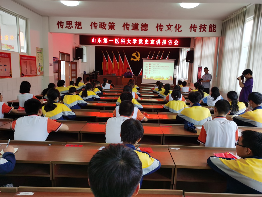 为热烈庆祝中国共产党成立101周年,喜迎党的二十大,进一步振奋精神、凝聚力量,7月6日,v站体育官网晨曦志愿服务队来到位于诸城市辛兴镇的辛兴中学,为孩子们开启了一场人生中非常有意义的党史宣讲报告会。