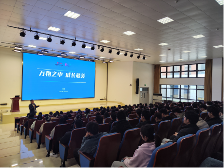 王金彬部长以《万物之中,成长最美》为主题,从“赢在选择”、“华丽转身”、“人际连接”、“终身学习”等四个方面与同学们进行了分享。王部长通过案例分析和幽默的比喻强调了选择的重要性,为同学们讲解了学校和社会的区别,并指导同学们面对不同的环境和不同的人际关系如何能更好地适应职场;王部长从“华为干部四力”展开,重点讲解了人际连接力的重要性,他表明每个人都不是一座孤岛,人际连接比拥有重要,合作比颠覆重要。最后,王部长通过“721”法则,强调了实践的重要性。